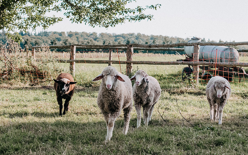 Den Anfang machten die fünf Merino Schafe Chef, Schlitzohr, Lotte, Flocke und Socke. Mittlerweile haben sich zu den Merinos in einer zweiten Herde noch Coburger Fuchsschafe dazu gesellt. Der zutrauliche und verschmuste Bock Ben macht die Coburger Fuchsschaf-Herde komplett.